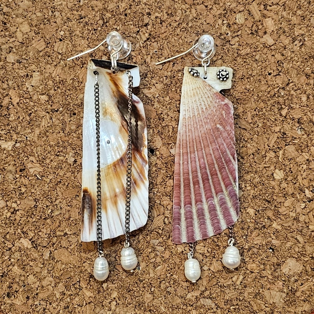 Trimmed Scallop Shell earrings with hanging Saltwater pearls
