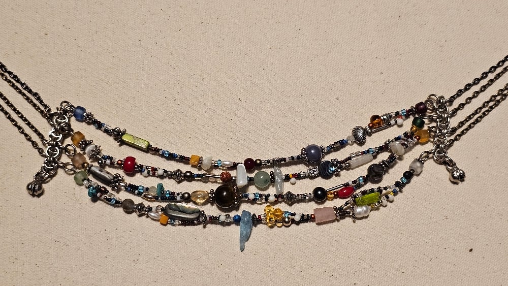The joiners for the 4 strands on each side are hand woven chainmail